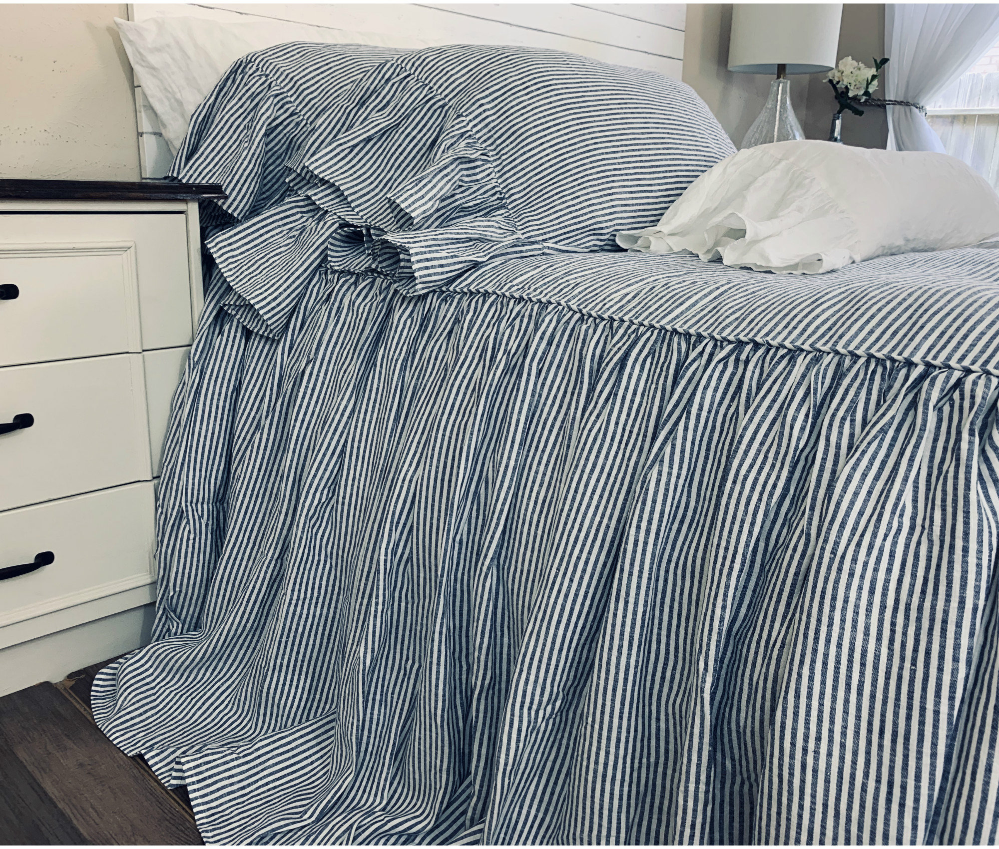 Denim Navy And White Striped Linen Bedspread Dyed Linen Etsy Israel